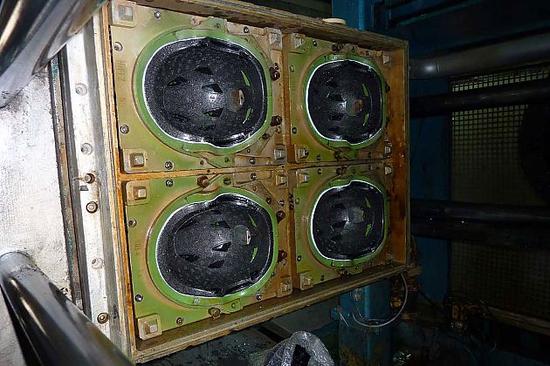 头盔衬里模具塑形完成后,一般同事会设计有很多孔洞和通道,目的是用于散热、排水、释放压力等。通常来说,每一个模具只合适一种款型、一种尺寸的头盔。需要注意的是,一个头盔衬里采用的也都不是全部相同的聚乙丙烯材料,针对不同的头部部位需要适应的碰撞强度,头盔两侧和头盔中央的聚乙丙烯材料会有所不同。
